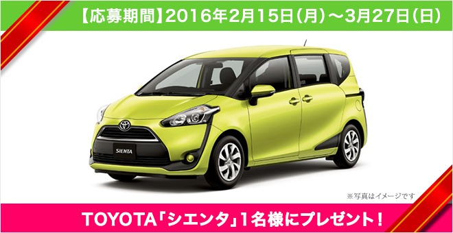・商品 トヨタ ハイブリッドカー プリウスS ・応募期間 2016年11月30日 ・当選者数