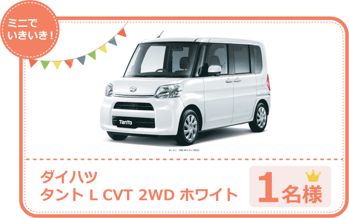 ・賞品 ダイハツ タント ・応募期間 2015年12月31日まで ・当選者数
