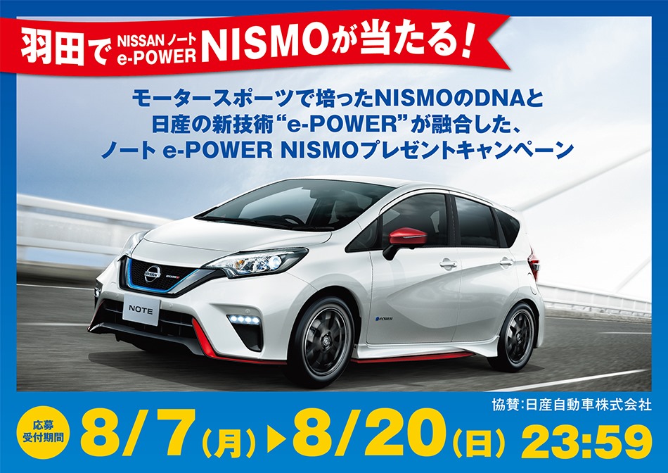 BIG SUMMER CAMPAIGN2017 羽田でNISSAN ノート e-POWER NISMOが当たる!キャンペーン
