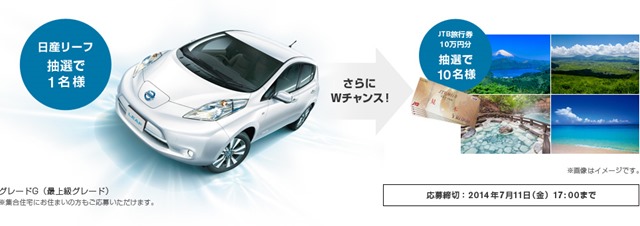 ご当選者の1名様には、日産自動車の3車種からお好きなクルマ1台をお選びいただきプレゼント 応募