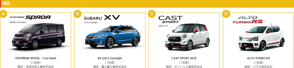 ・賞品 ホンダ N-BOX ・応募期間 2015年8月31日 ・当選者数 1名様