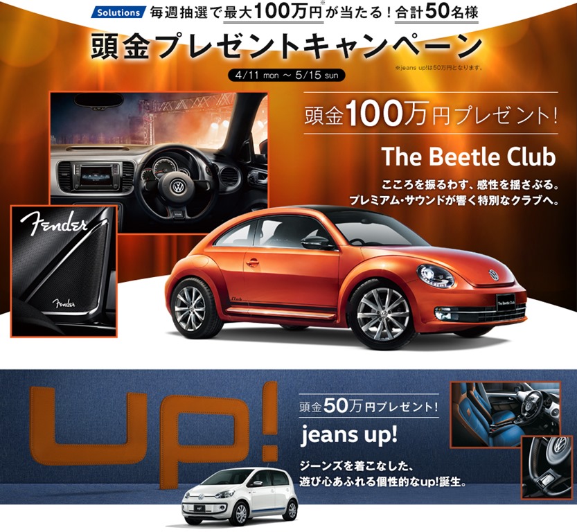 フォルクスワーゲンさんより毎週抽選で最大100万円が当たる頭金プレゼントキャンペーン!