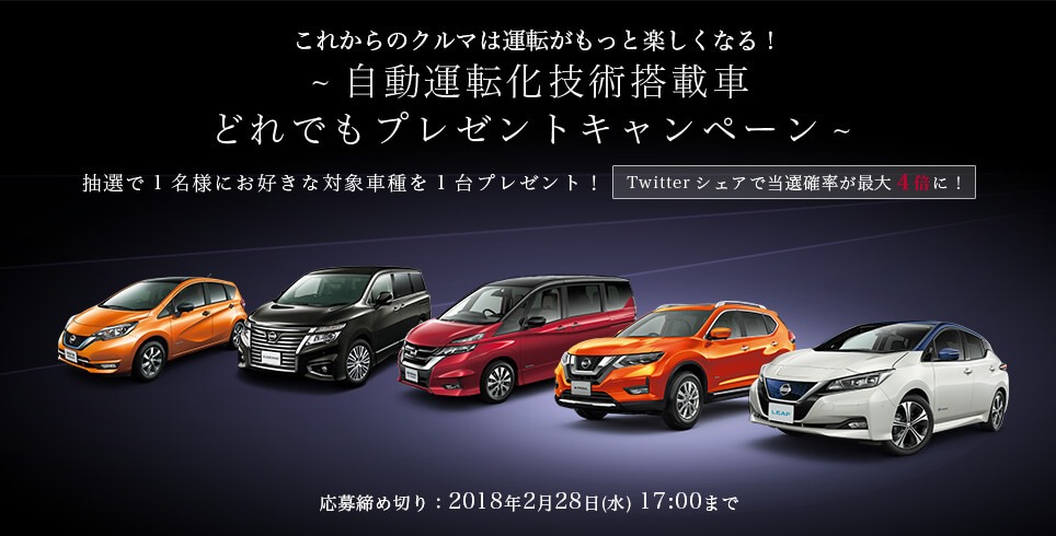 日産 自動運転化技術搭載車どれでもプレゼントキャンペーン!